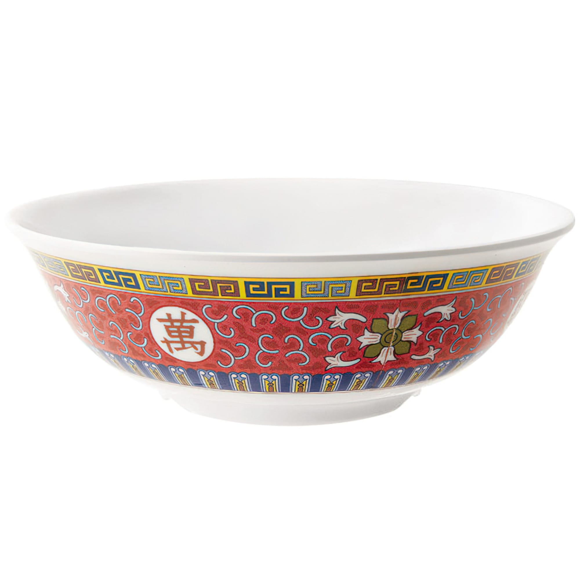 A brilliant red base with white floral