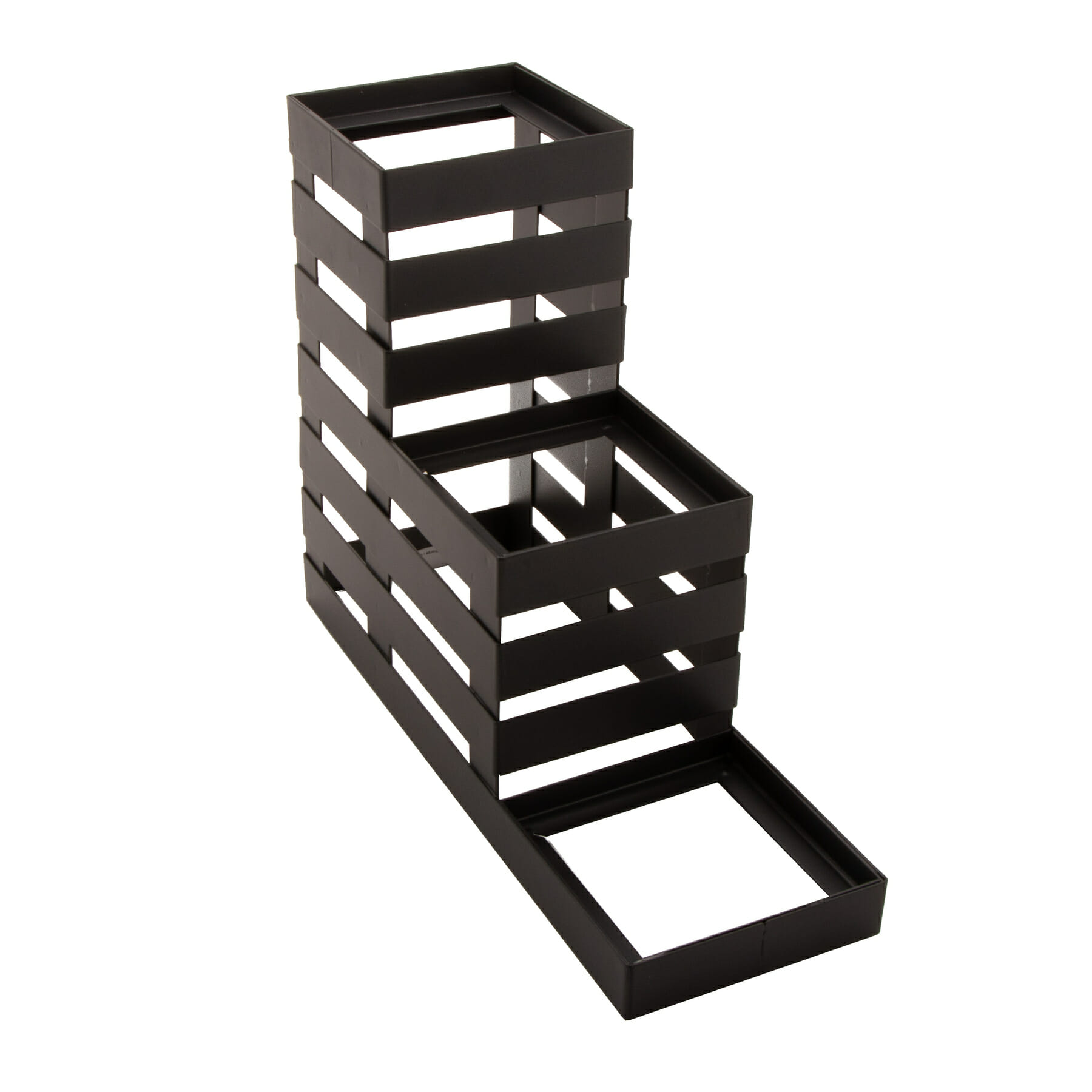 MTS-36-MG – 3 tier condiment stand (Stair Step design) for 4″ x 4″ x 4″ square bowls & Stainless Steel Flatware Cylinders ,Gun Metal Grey ,12 1/2″ x 4 1/4 x 9 3/4″ h