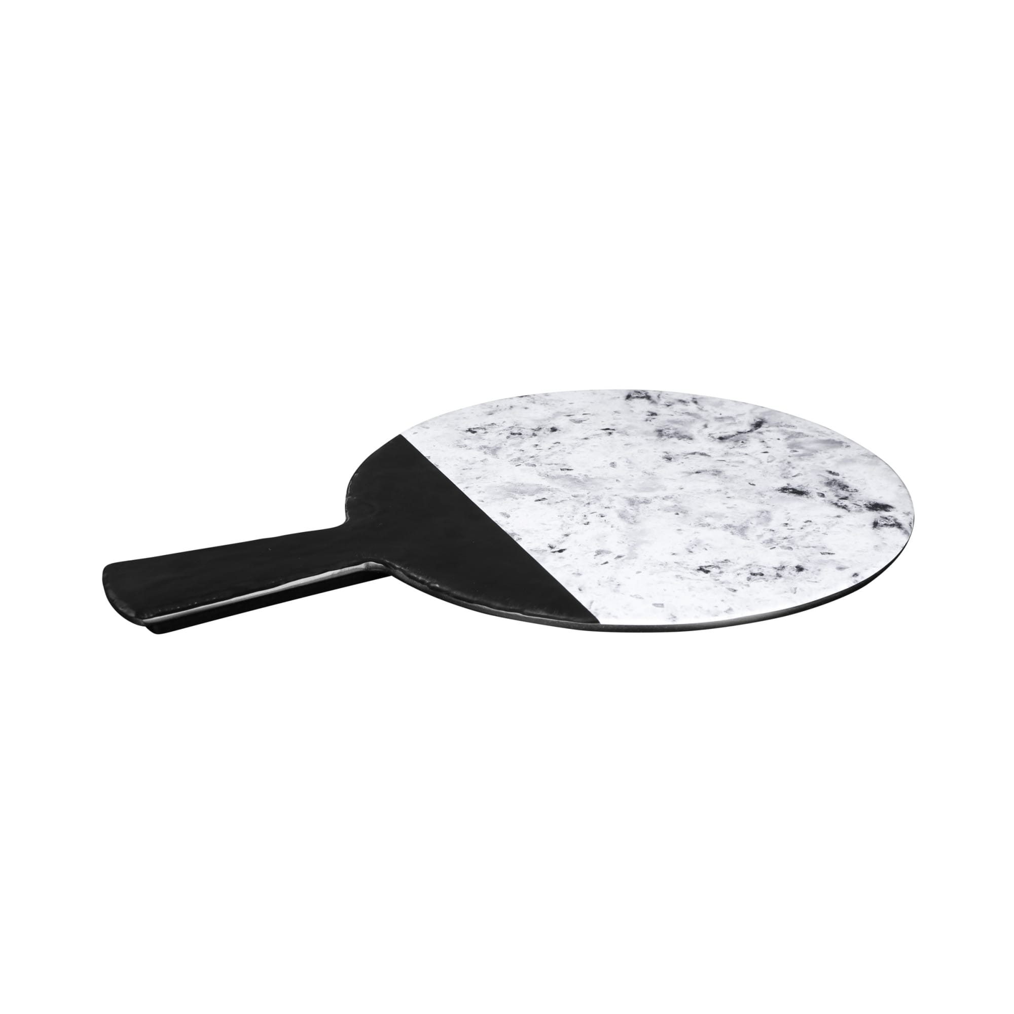 M12RWSM-BH – Melamine Round Serving Board – Black, Horizon Marble