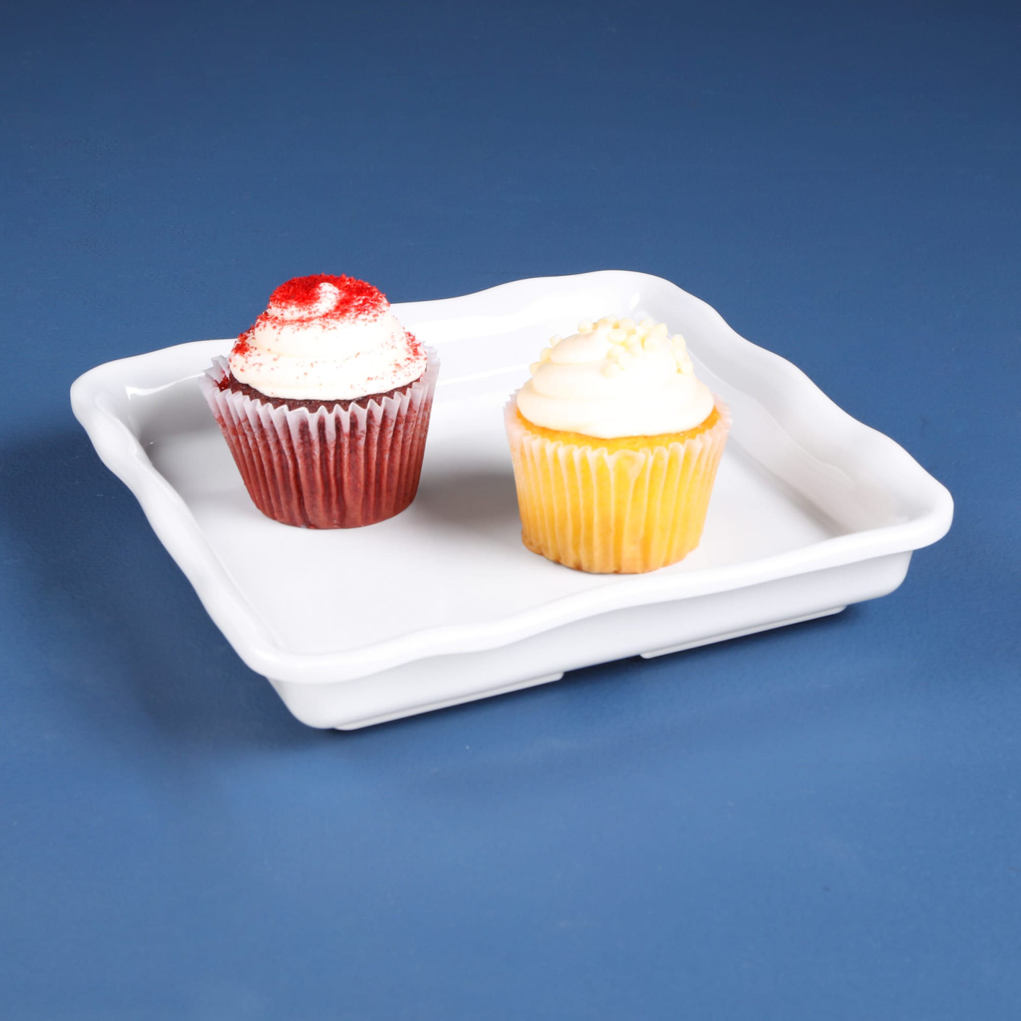 Edge was named for the ruffled wavy edge present on each product. A hammered texture adds a layer of dimension to these large serving trays. The edgy trays come in two colors, black and white, for simplified pairing options.