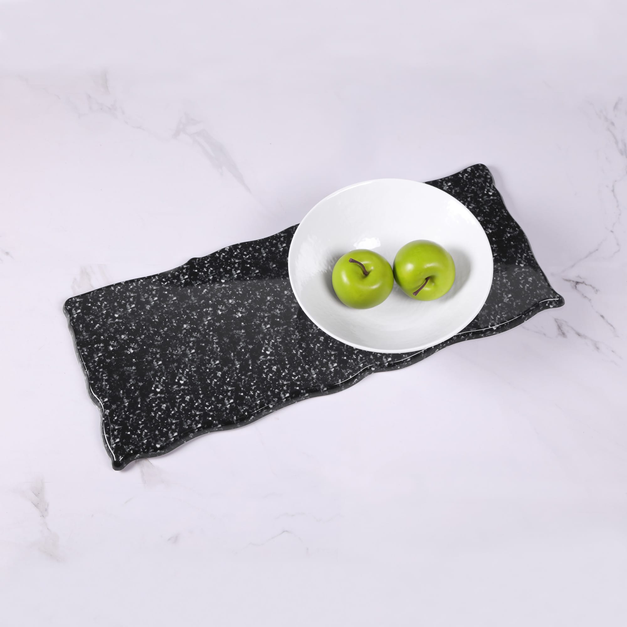 Fo Granite is a collection of irregular edge serveware pieces designed for superior catering and serving capabilities. The two color options of rustic and black allow for endless pairing possibilities.