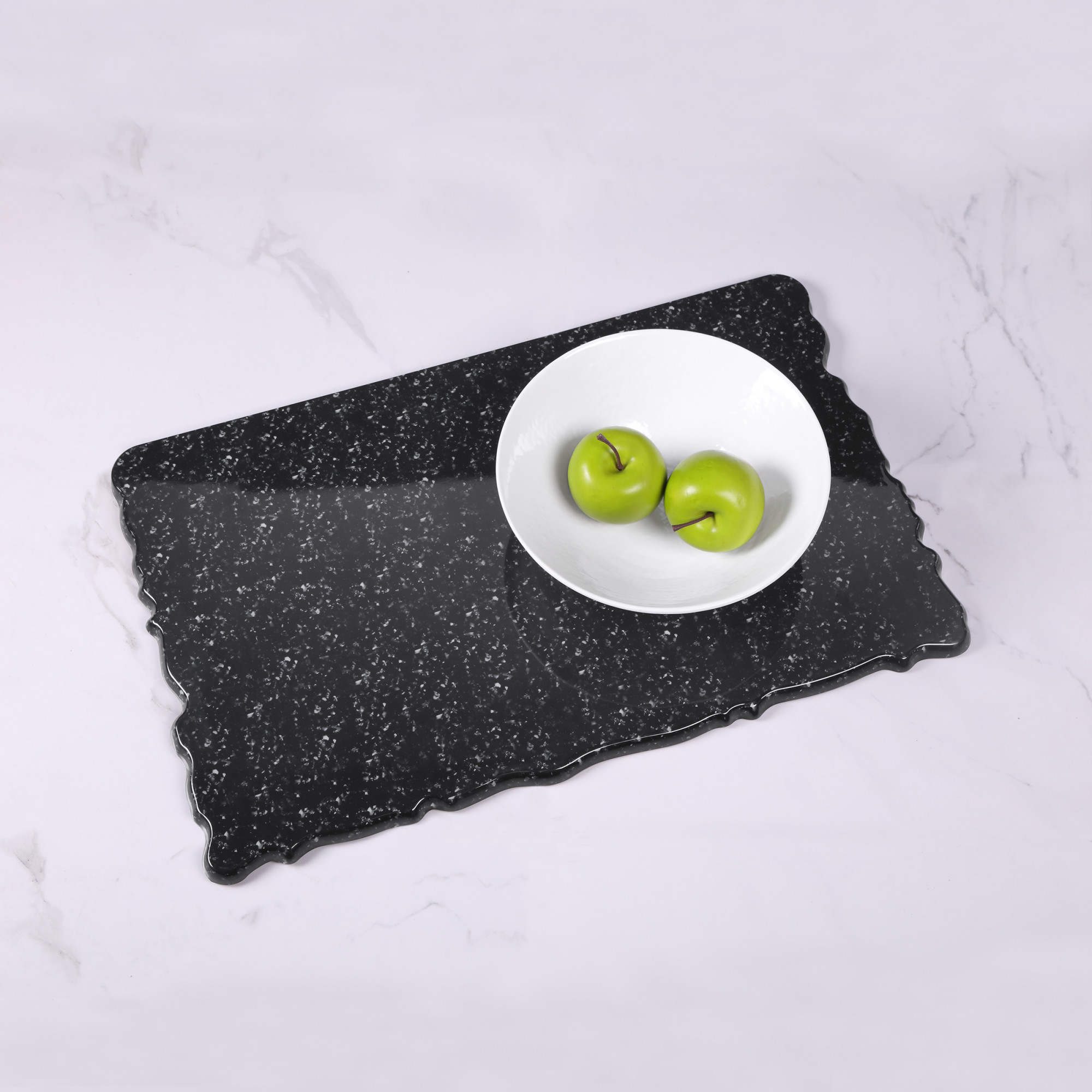 QS2415-GB – Melamine Rectangular Riser w/ One Straight Edge – Black Granite
