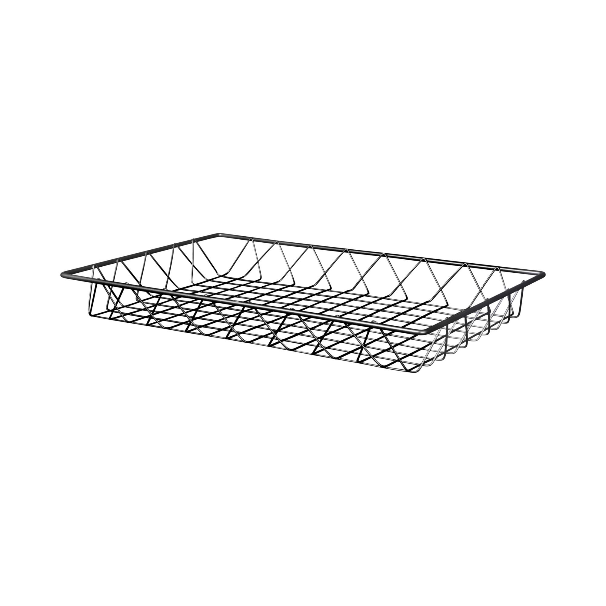 The Wire Basket series of rectangular and square baskets are ideal for self serving cafeterias and buffets. An attractive gunmetal gray color provides a simple design that makes this basket suitable for a variety of settings from upscale restaurants to cozy cafes.
